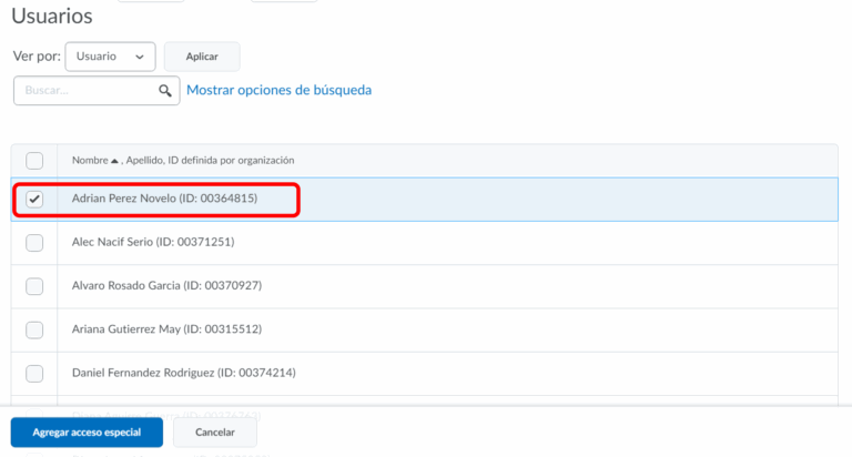 - Paso 6. Al deslizar hasta abajo de esta ventana, podrá ubicar el apartado de usuarios, selecciona los usuarios que tendrán acceso especial y da clic en el botón de “Agregar acceso especial”.