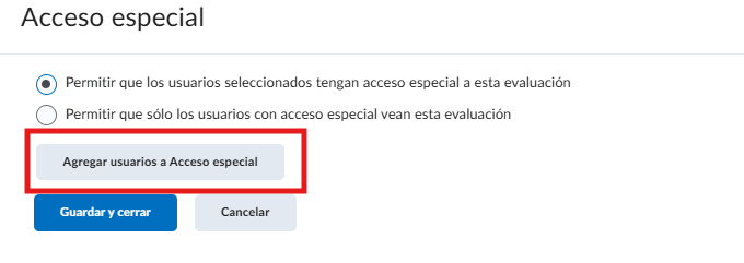 - Si selecciona la segunda opción, solo los alumnos con este acceso especial podrán visualizar el examen en el apartado evaluaciones.