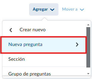 Al configurar las preguntas para su evaluación, puede elegir entre dos opciones: