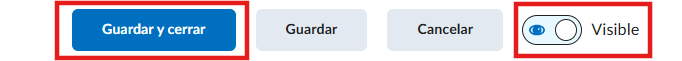 Seleccione Guardar y cerrar y active la visualización de la evaluación. Como la evaluación ya está configurada con fechas y horas específicas, los alumnos podrán acceder a ella únicamente dentro del periodo establecido.