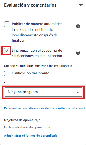 - Verifique que la opción “Sincronizar con el cuaderno de calificaciones” esté activa.