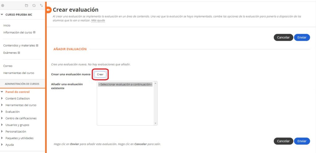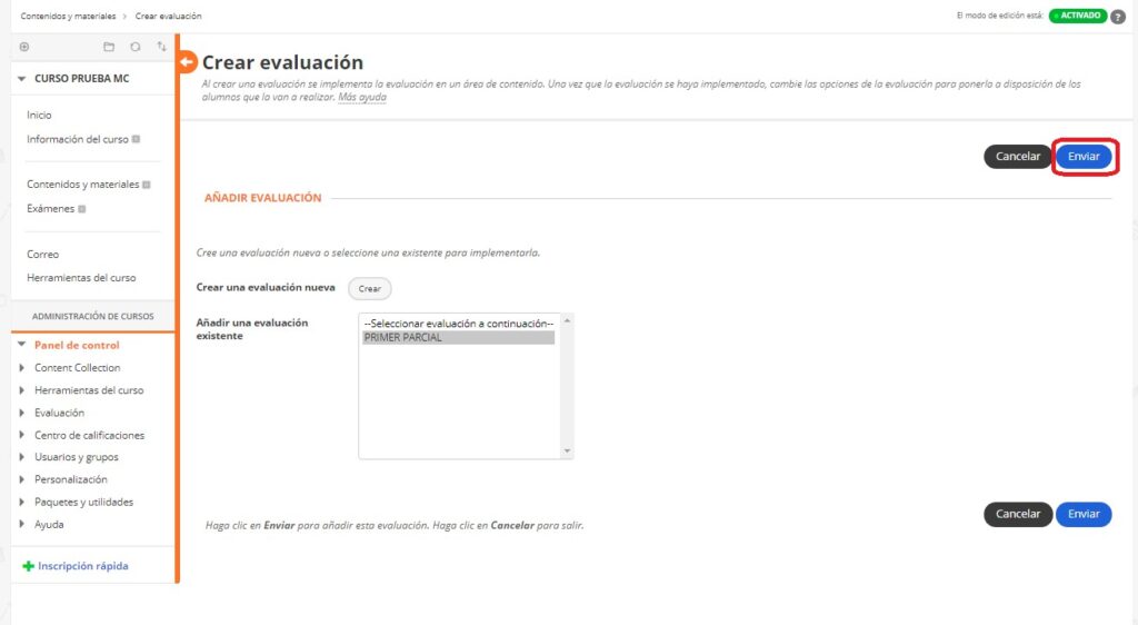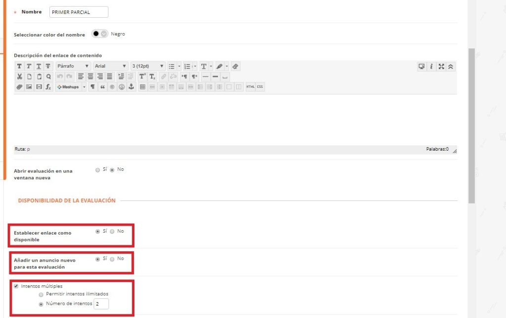 Paso 13. En abrir evaluación en una ventana nueva dejamos selecciona la opción NO.