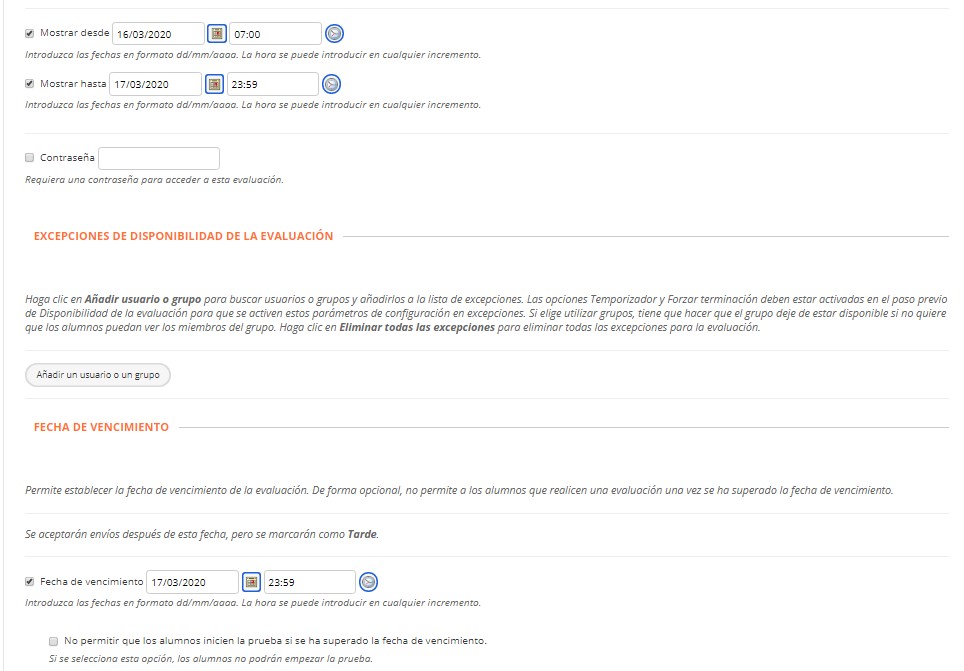 En fecha de vencimiento pondremos la misma fecha límite que establecimos antes en la casilla mostrar hasta.