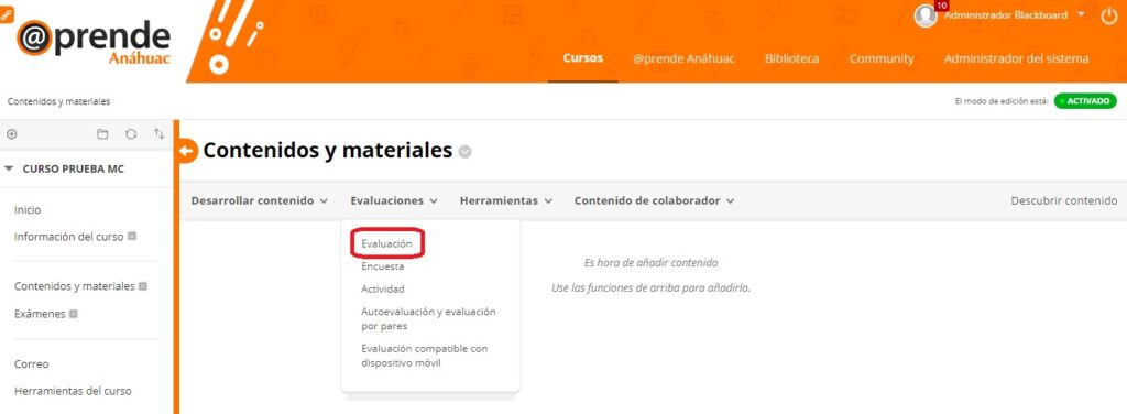 Paso 2. Se nos desplegará una pantalla similar a esta. En ella pasaremos nuestro cursor sobre la opción evaluaciones y seleccionaremos de la pestaña que se desplegará la opción evaluaciones.