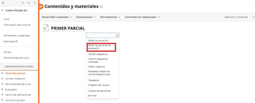 Si damos clic en editar las opciones de la evaluación, nos regresará a la pantalla donde podremos editar de nuevo la configuración de la publicación de nuestra prueba.