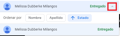 Al darle clic a la flecha a lado del nombre de nuestro alumno, nos saldrá la lista de alumnos con sus respectivas tareas. En esta lista, podemos ver cuales son las tareas que nos hacen falta calificar, de esa misma actividad.