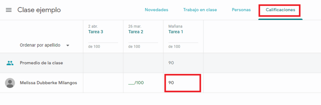 Así es cómo nos aparecerá en el centro de calificaciones.