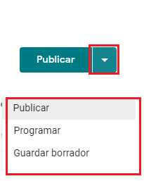 • Paso 5. La herramienta de publicar nos da tres opciones: publicar, programar y guardar borrador. Si queremos publicar en ese momento el anuncio, elegimos la opción de publicar. Si queremos que la publicación aparezca en una fecha y horario específico, elegimos programar. Y si queremos guardar el anuncio para en un futuro, elegimos la opción de guardar borrador.