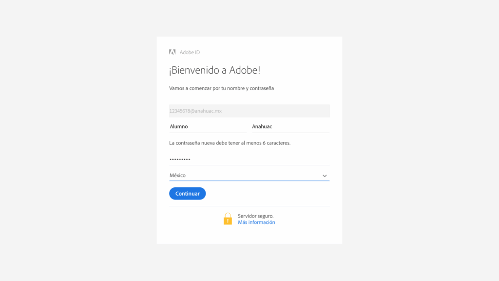 6- Si la cuenta no está creada, proporciona los datos que pide