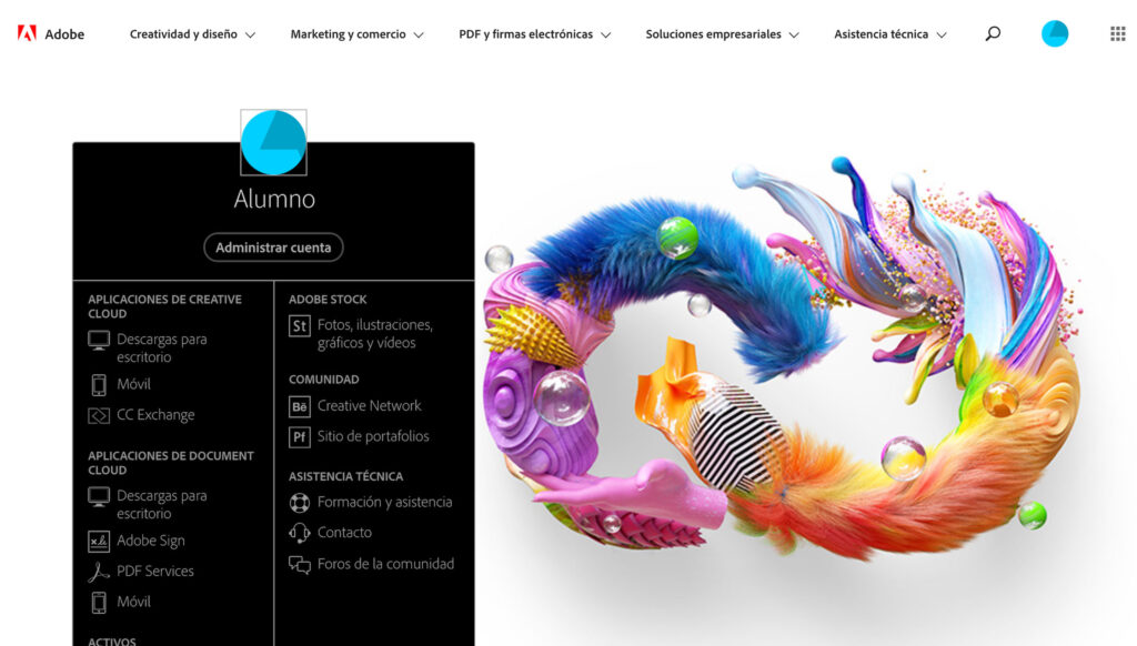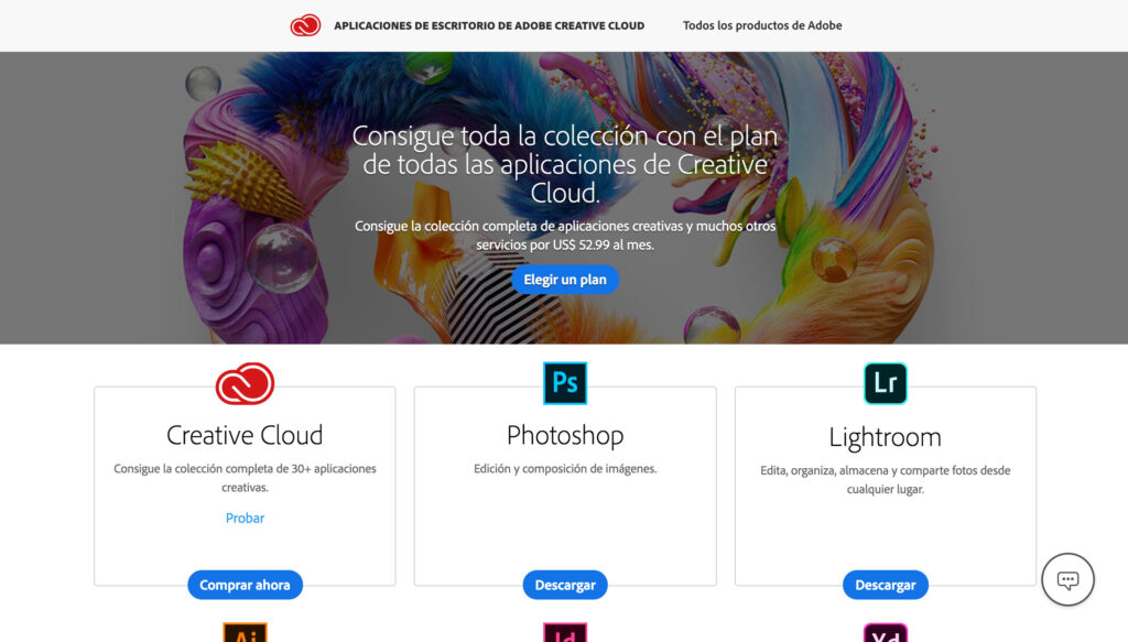 - Instala Cretive Cloud e inicia tu sesión y podrás ver las aplicaciones que puedes bajar.