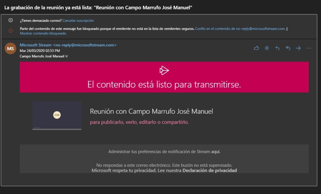 Llegará a tu correo una confirmación de acceso a la grabación.