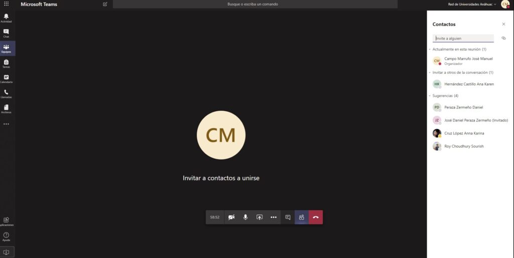 Si damos clic a la opción invitar a alguien, podemos invitar a personas de nuestra organización a la videoconferencia utilizando el buscador.