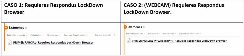 CASO 2: (WEBCAM) Requieres Respondus LockDown Browser.