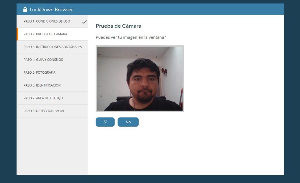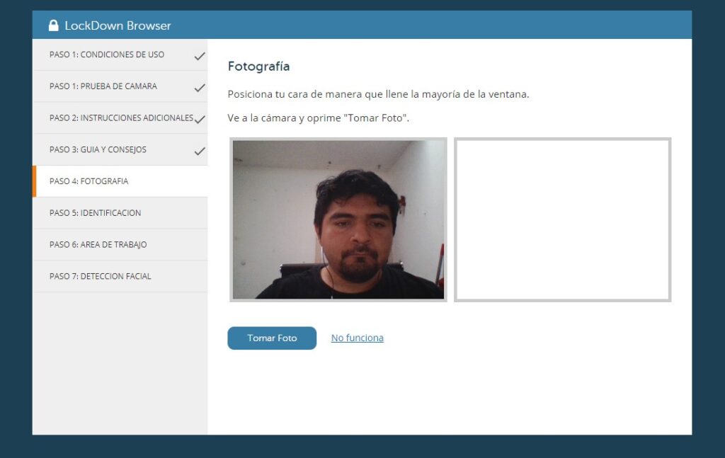 - Paso 3. Fotografía: se te pedirá tomar una foto frente a tu cámara.