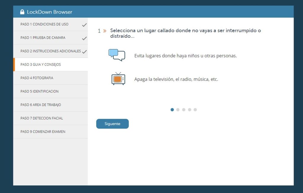 No podrás tomar capturas de pantalla, navegar por internet y si es necesario te pedirá acceso a la cámara web de tu dispositivo o equipo de cómputo para poder presentar tu examen.