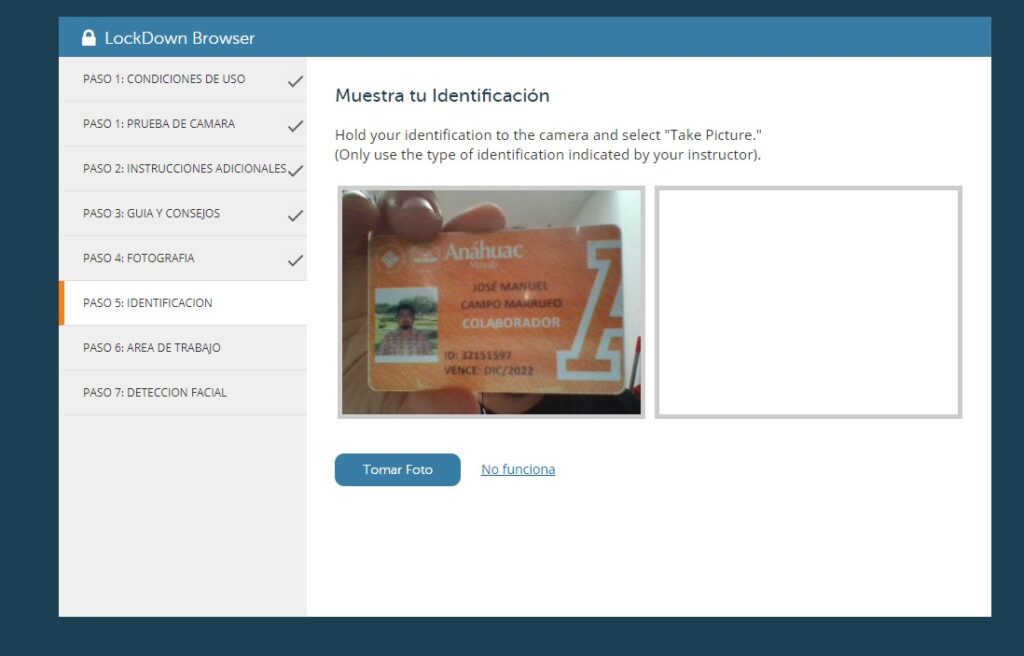 - Paso 4. Identificación: Te pedirá que presentes una ID ante la cámara para tomarle una fotografía.