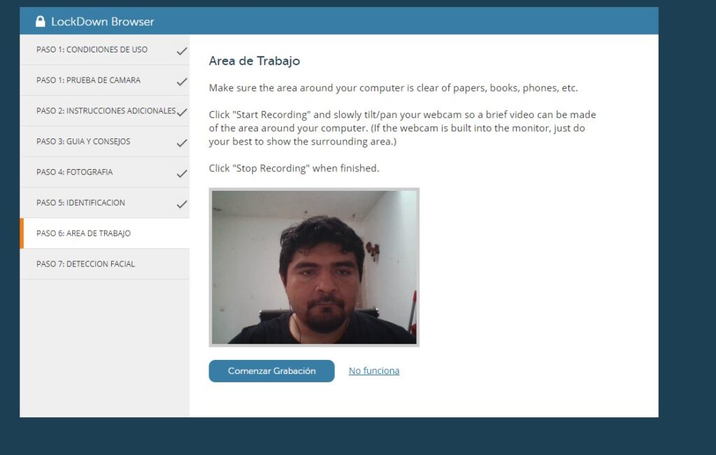 - Paso 5. Área de trabajo: Te pedirá que grabes el área de trabajo en donde te localizas para verificar que sea un área despejada.