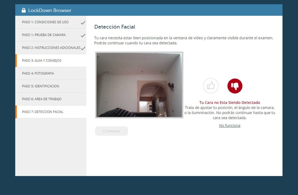 En caso de que tu rostro no esté a cuadro aparecerá la siguiente pantalla:
