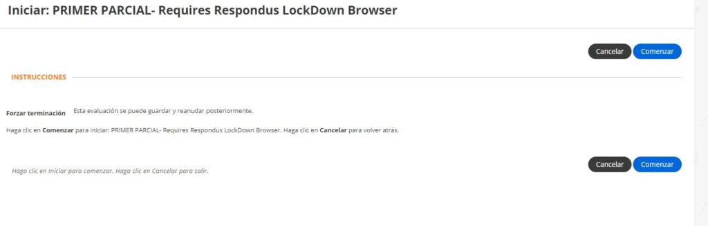 ESTA EVALUACIÓN REQUIERE EL USO DE RESPONDUS LOCKDOWN BROWSER. INICIE RESPONDUS LOCKDOWNBROWSER Y VUELVA A ESTA EVALUACIÓN PARA CONTINUAR.