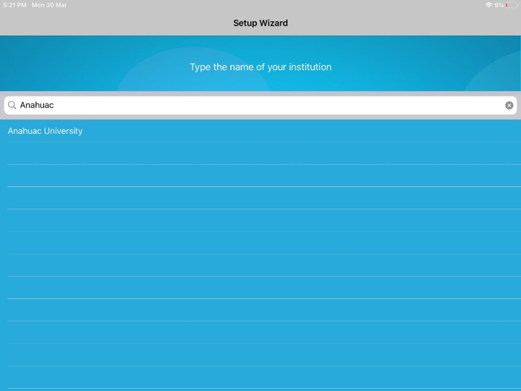 - Paso 2. Una vez descargada la aplicación, deberás localizar nuestra Universidad en el buscador para poder acceder a @prende. Escribe Anáhuac en el buscador y pulsa Anáhuac University.
