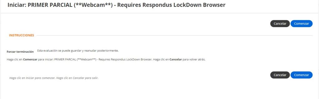 CASO 2: (WEBCAM) Requieres Respondus LockDown Browser. Ocurre la misma situación que el caso 1.