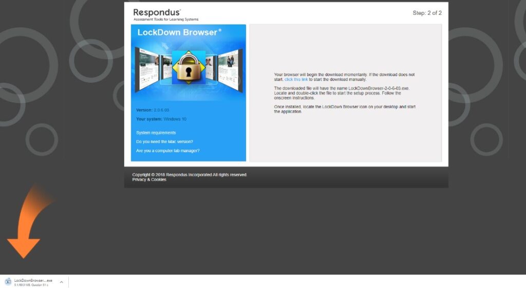 - Paso 2. Al dar clic se descargará el archivo ejecutable de Lockdown Browser.