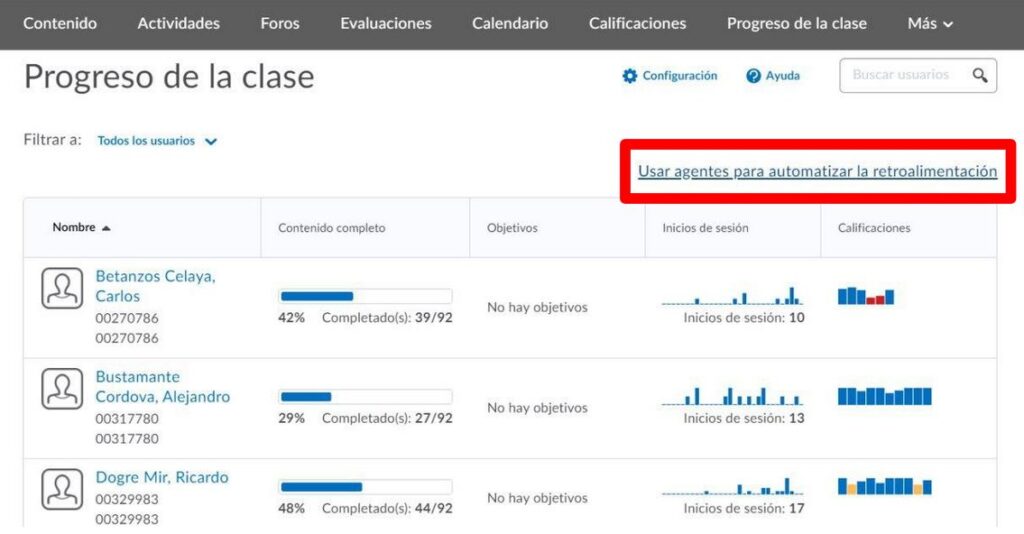 Paso 2. Escogemos el botón de usar agentes para automatizar la retroalimentación.