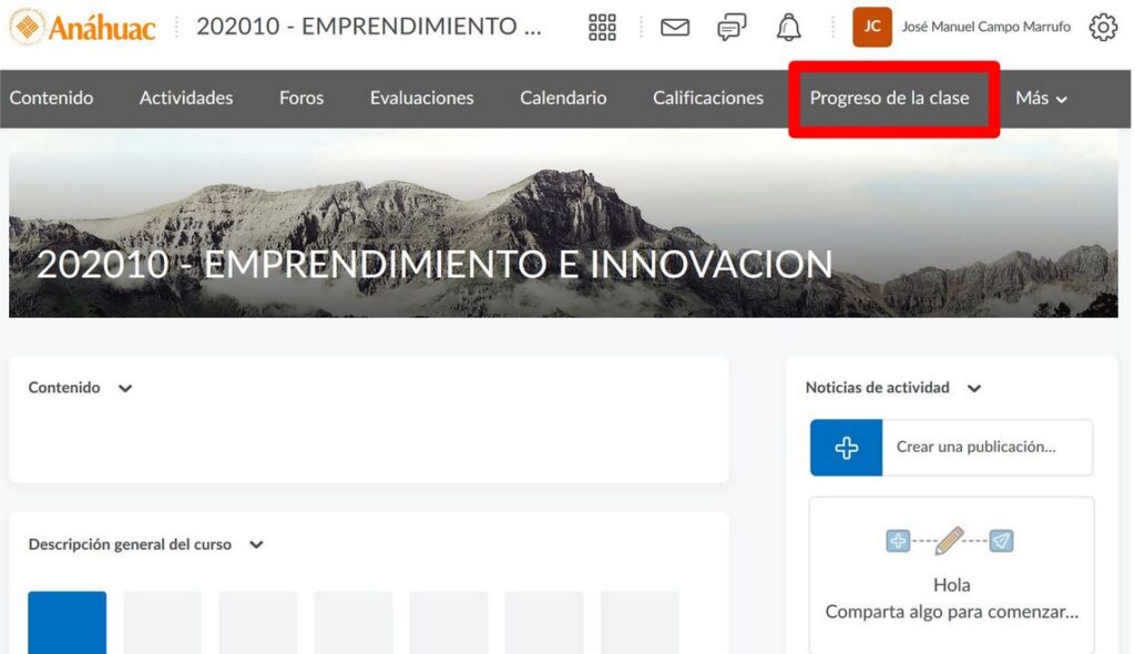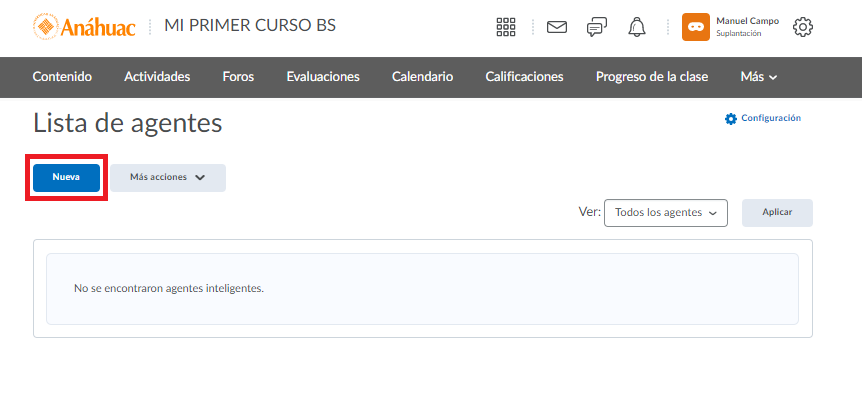 Paso 1. Para crear un Agente Inteligente, nos dirigimos al apartado de Progreso de la Clase.