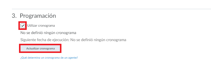Daremos clic en Utilizar Programación y daremos clic en Actualizar Cronograma.