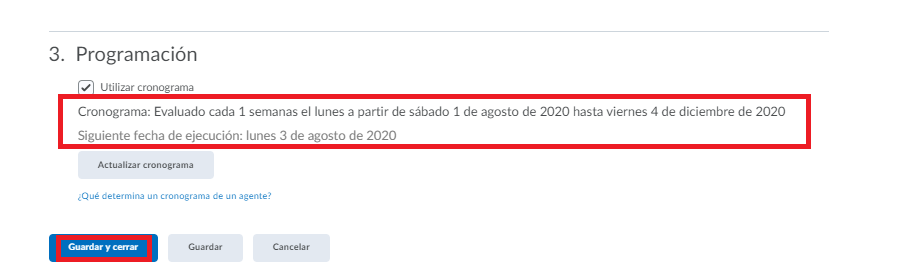 Paso 18. En la tercera sección Programación estableceremos el periodo de tiempo en el que queremos que se realicen las acciones que estamos programando.