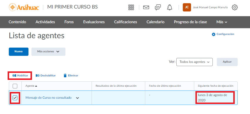 De lado izquierdo daremos clic en la casilla para seleccionar nuestro Agente Inteligente y seleccionaremos el botón de Habilitar.