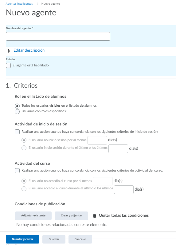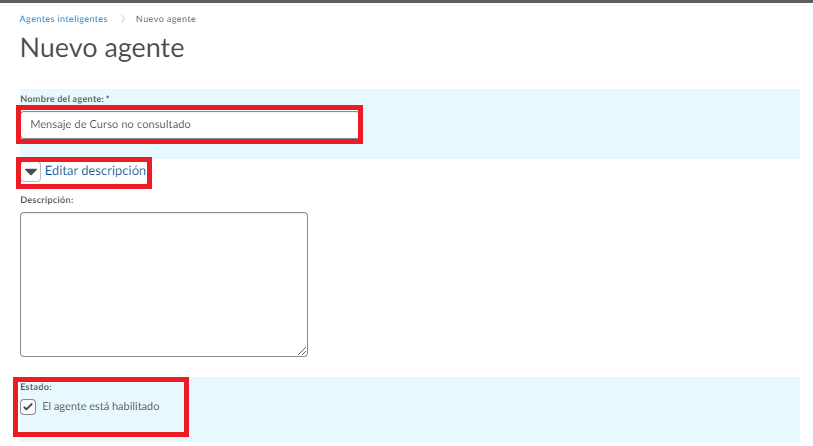En Estado dejamos marcada la casilla El agente está habilitado.