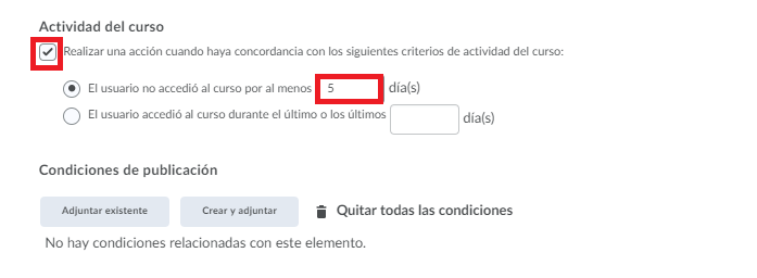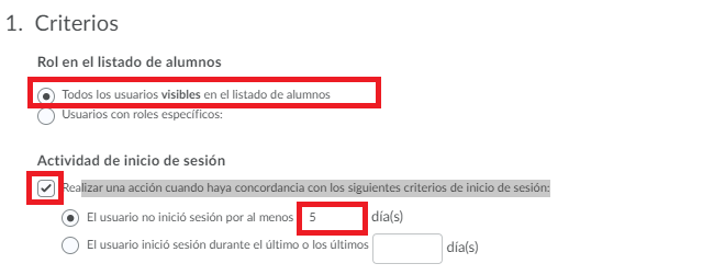 En esta ocasión crearemos un mensaje cuando nuestro alumno no haya ingresado al curso en un determinado periodo de tiempo.