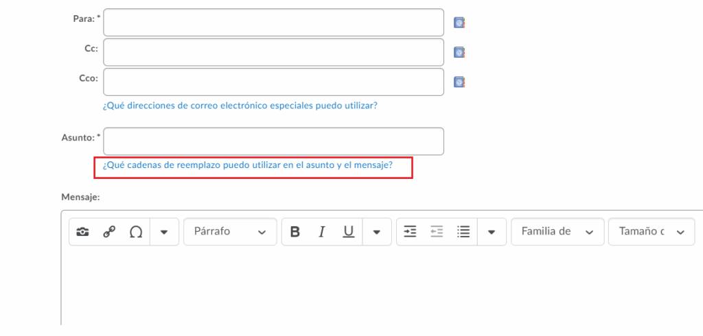 Las podemos encontrar dando clic a ¿Qué cadenas de reemplazo puedo utilizar en el asunto y el mensaje?