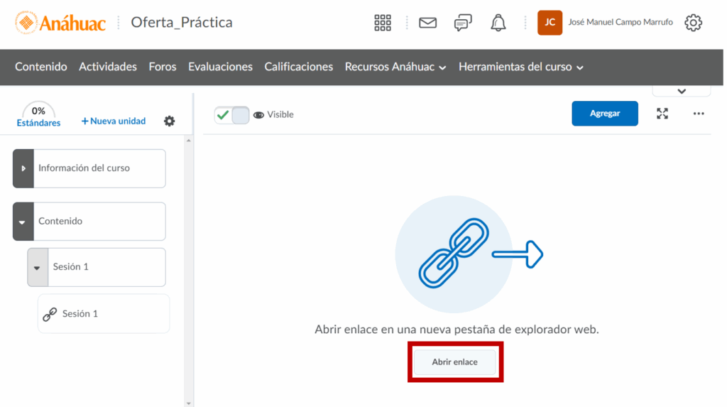 Paso2. Entra a la liga de la conferencia que creaste en el contenido de tu curso.