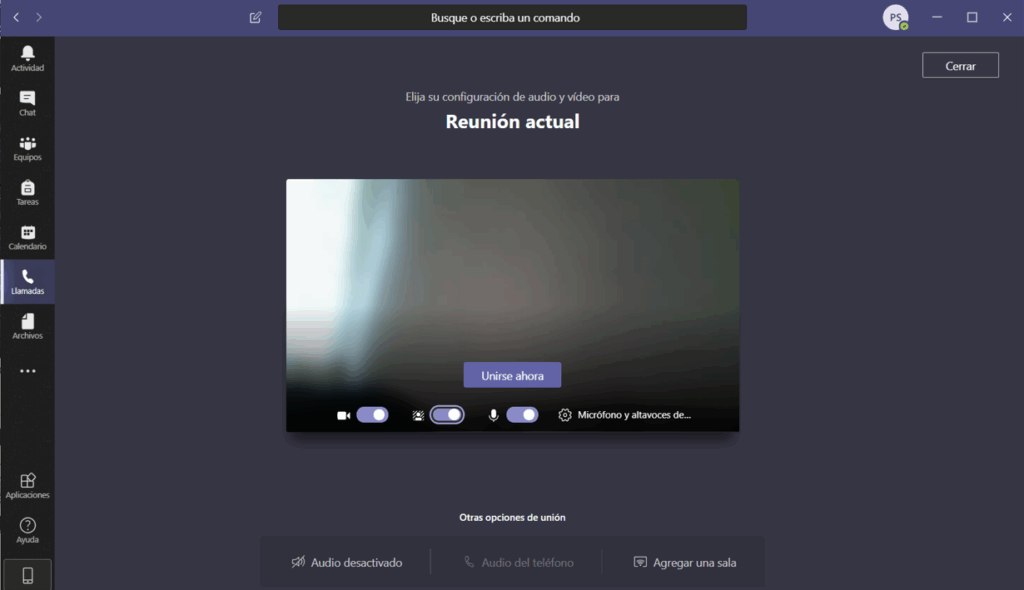 Paso 4. La aplicación de Microsoft Teams se abrirá en nuestra computadora y podremos ver una imagen previa de nosotros antes de entrar a la sala de conferencia.