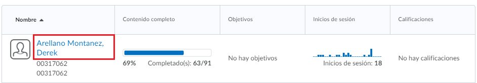 - Si le damos clic al nombre de uno de los alumnos, podremos ver información detallada de su actividad dentro del curso.