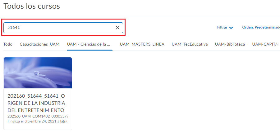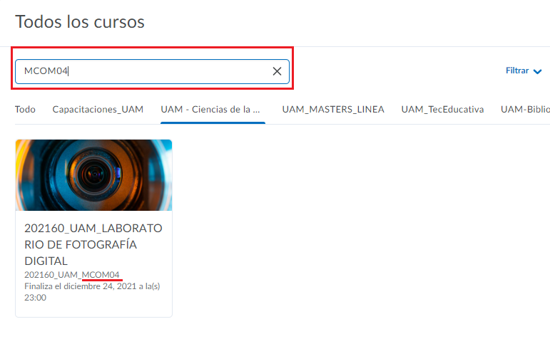 Ahora, veremos como encontrar un curso en específico.