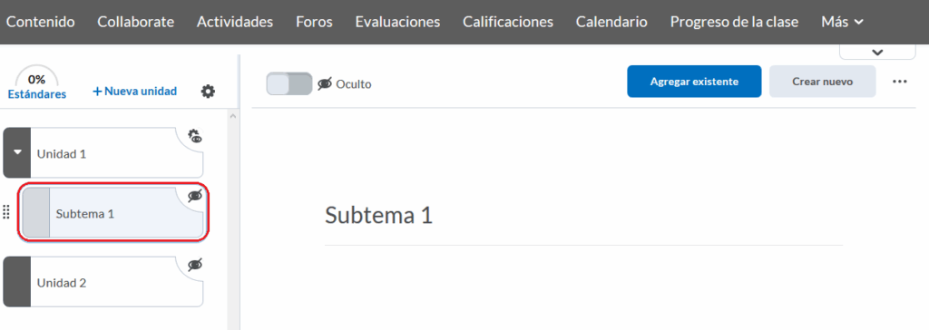 Sólo en caso de requerir agregar un contenido específico para una sección (como una lectura o ejercicio adicional) es que se recomienda restringir su visibilidad únicamente para ésta.