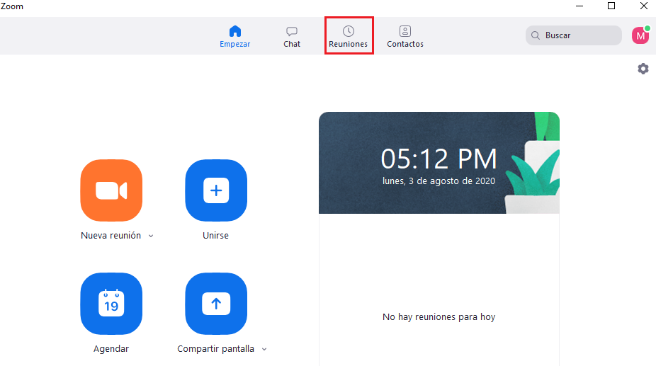 Paso 2. Damos clic en reuniones.