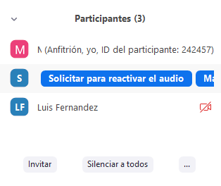 Tenemos la herramienta de participantes, si damos clic al botón nos aparecerá el listado de personas que se encuentran en la sesión.