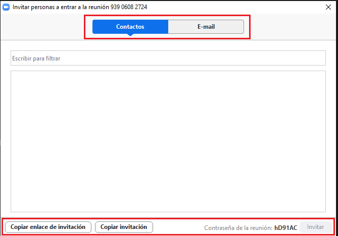 Y si damos clic a la flecha que se encuentra a lado, tendremos la opción de invitar. Nos aparecerá una ventana, que nos permitirá invitar a nuestros contactos o copiar el enlace de invitación.