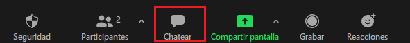 La herramienta de chatear, nos da la posibilidad de enviar mensajes a todos los participantes de la sesión o mensajes privados a la persona que escojamos.