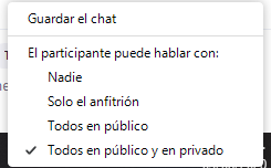 Podemos enviar archivos, elegir al destinatario de nuestro mensaje, al igual que configurar los permisos de los participantes en cuanto a lo que respecta la herramienta de chatear.