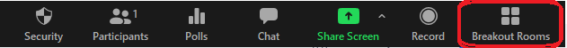 Paso 2. Damos clic en Breakout Rooms/Salas para grupos pequeños