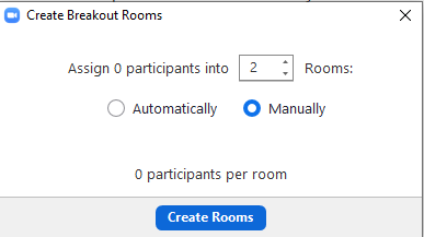 Debajo, seleccionamos si queremos que Zoom haga la selección de manera automática (al azar), o manual (en donde nosotros indicamos qué alumnos ingresarán a qué salas).