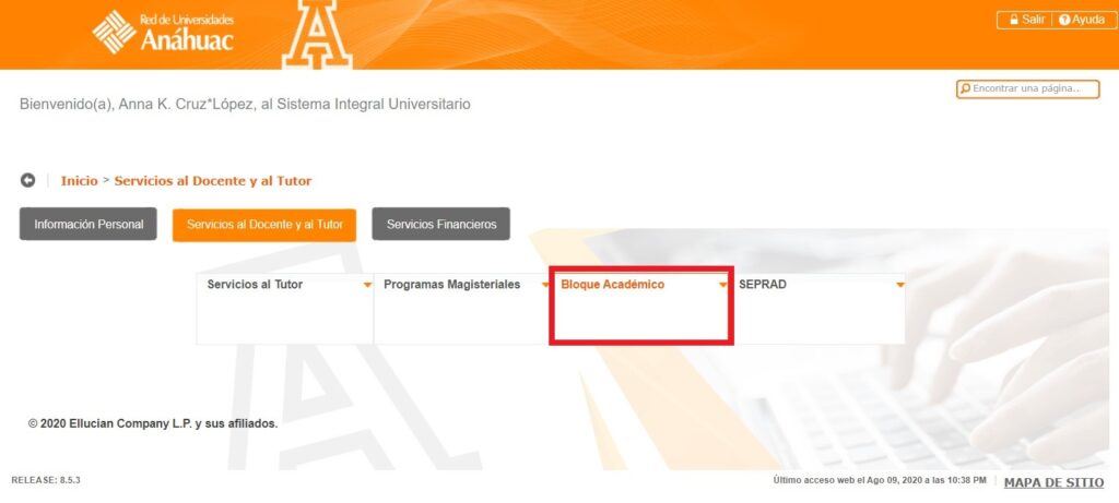 Paso 3. Seleccionamos Bloque Académico.