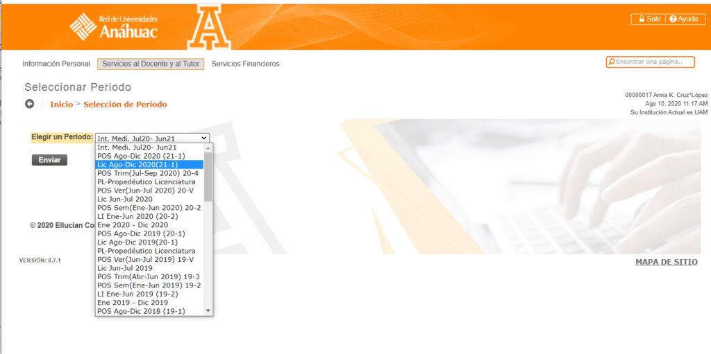 Paso 5. En el desplegable, seleccionamos el periodo académico que corresponda.