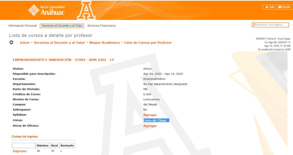 Paso 7. Dentro de esa misma pantalla, nos dirigimos a la parte de abajo, para encontrar  la sección de Resumen de clases.