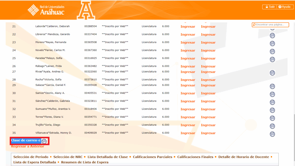 Paso 8. En la parte de abajo de toda la lista de clase, damos clic en el botón de Clase de correo-e.